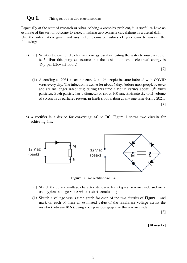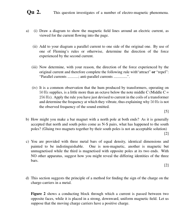 Marks: Marks allocated for each question are shown in brackets on the right. Working must be shown in order to get full credit, and it is helpful to write down numerical values of any intermediate steps.