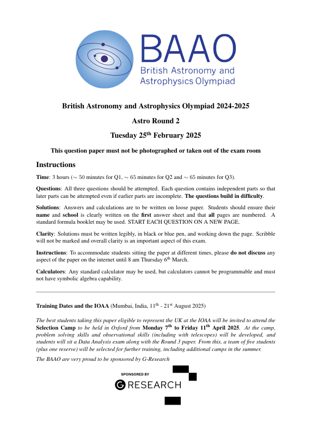 想要挑战天体物理领域的顶尖竞赛?别错过英国天文学和天体物理学奥赛(BAAO)!它由英国物理奥赛组委会创立并主办,是英国该领域的最高级别学术活动。自2019年由ASDAN中国引入后,已成为国内物理爱好者通往国际舞台的重要通道。备战从了解开始,我们推荐大家通过真题提前感知考试难度,进行针对性复习。